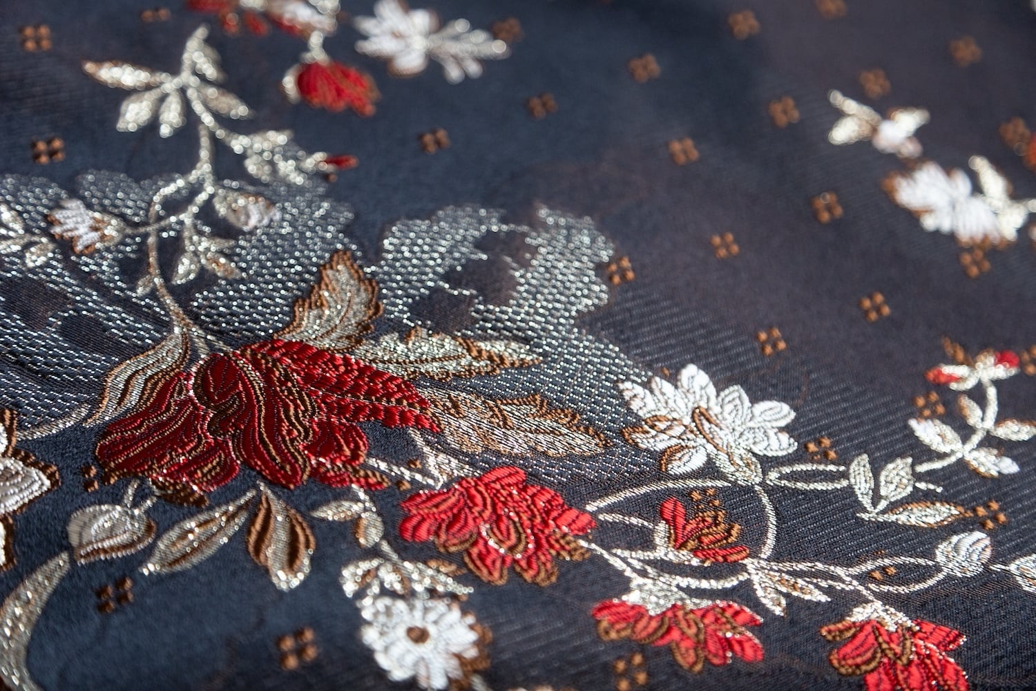 赤いお花が美しいジャガード生地で仕立てたブルゾン。