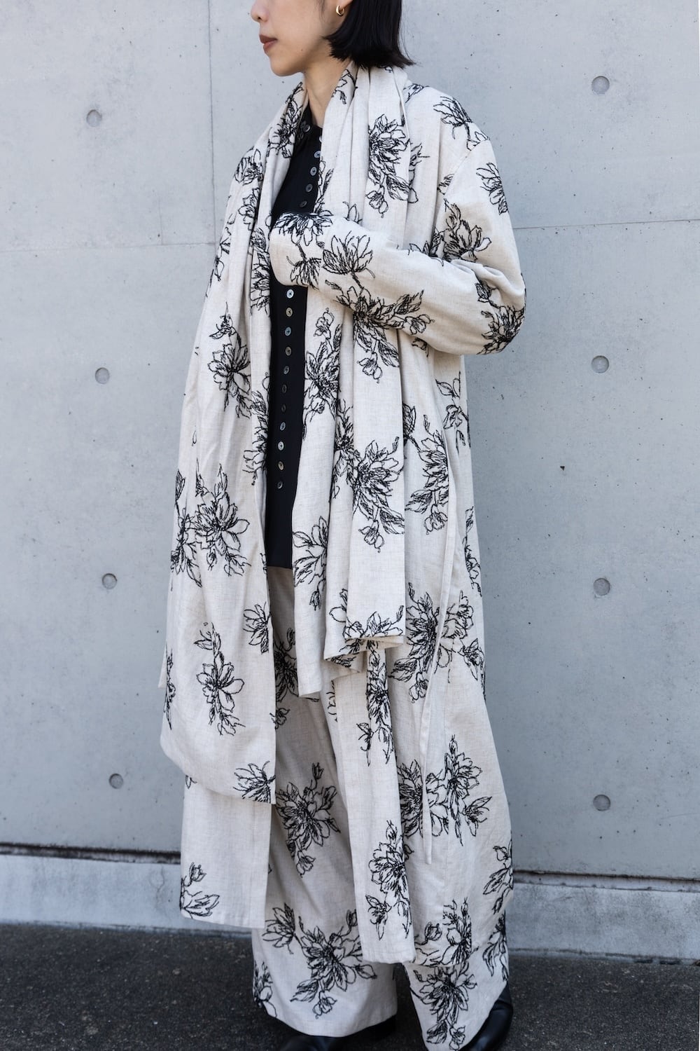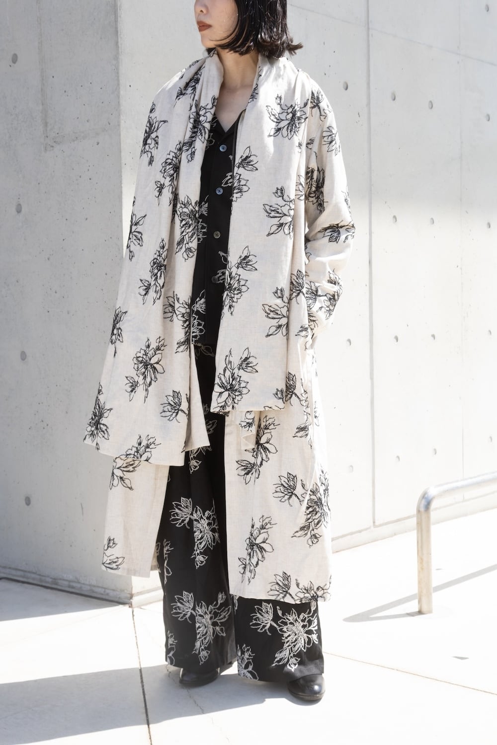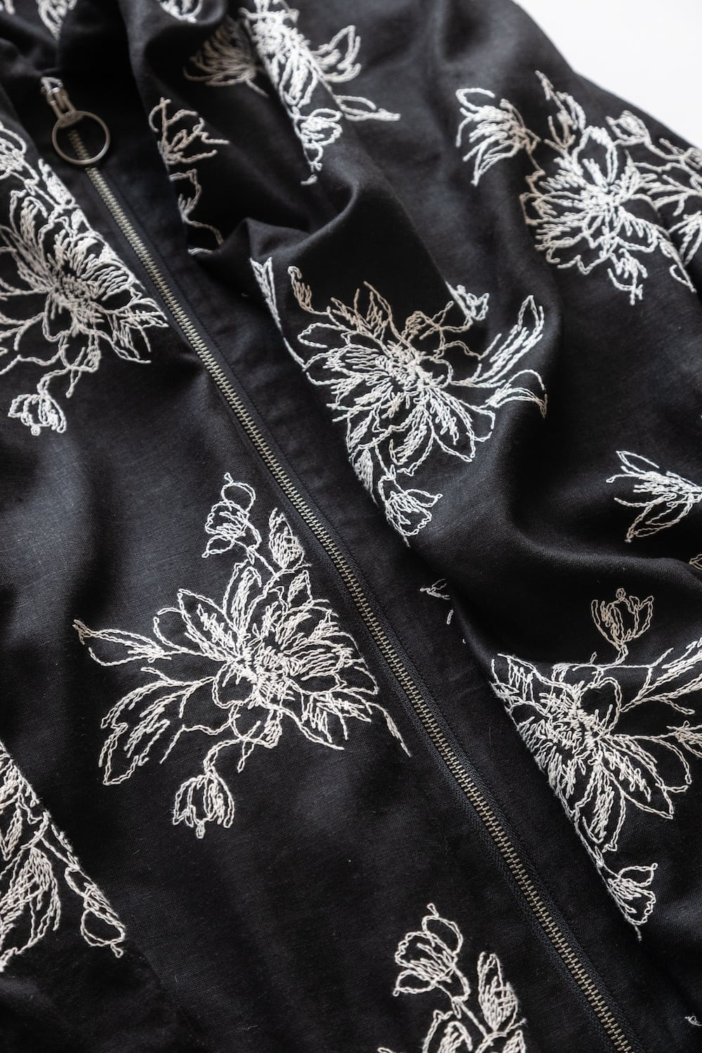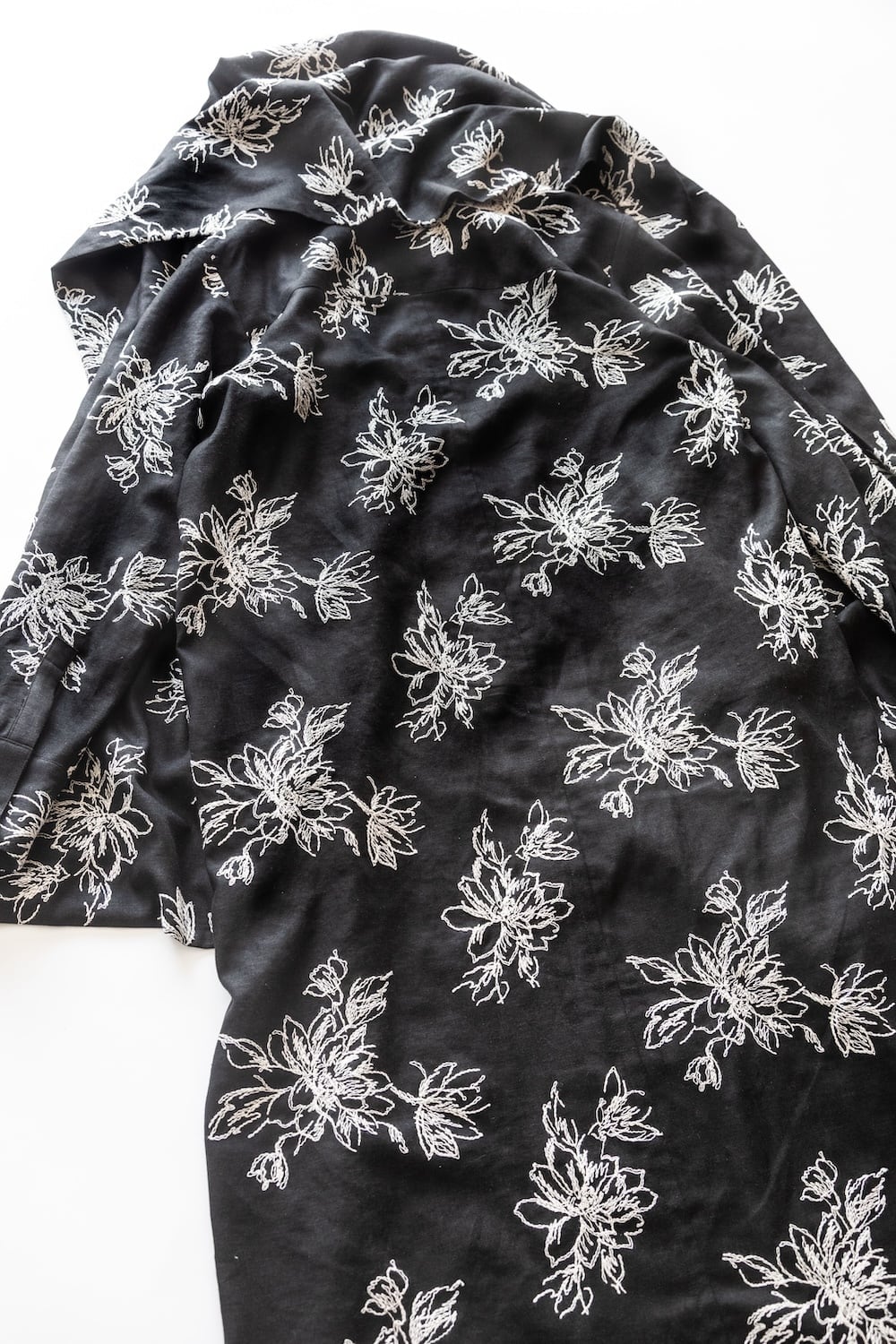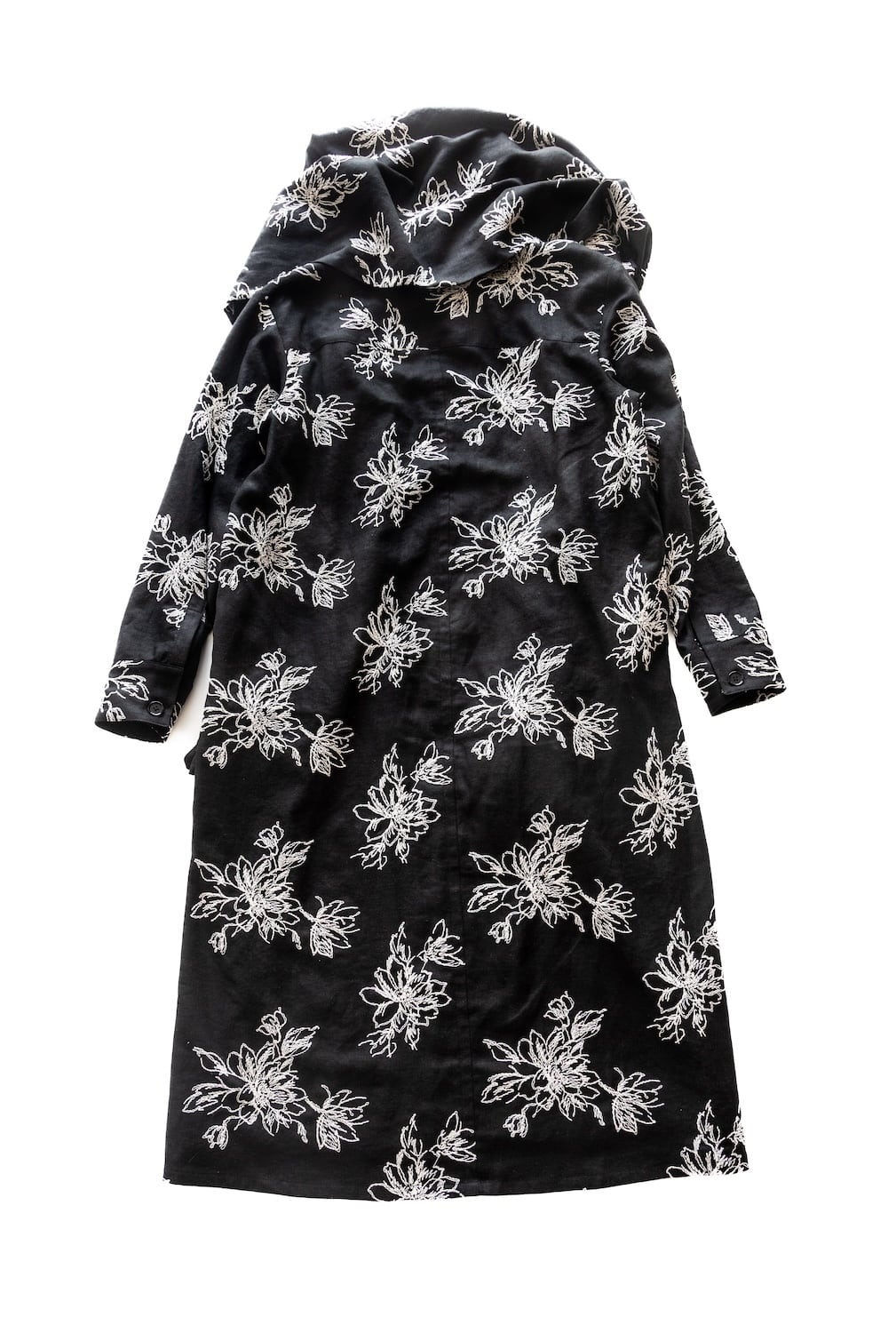 今回はブラックのレーヨン×リネン生地に手書き風のお花の刺繍が沢山施された1着。