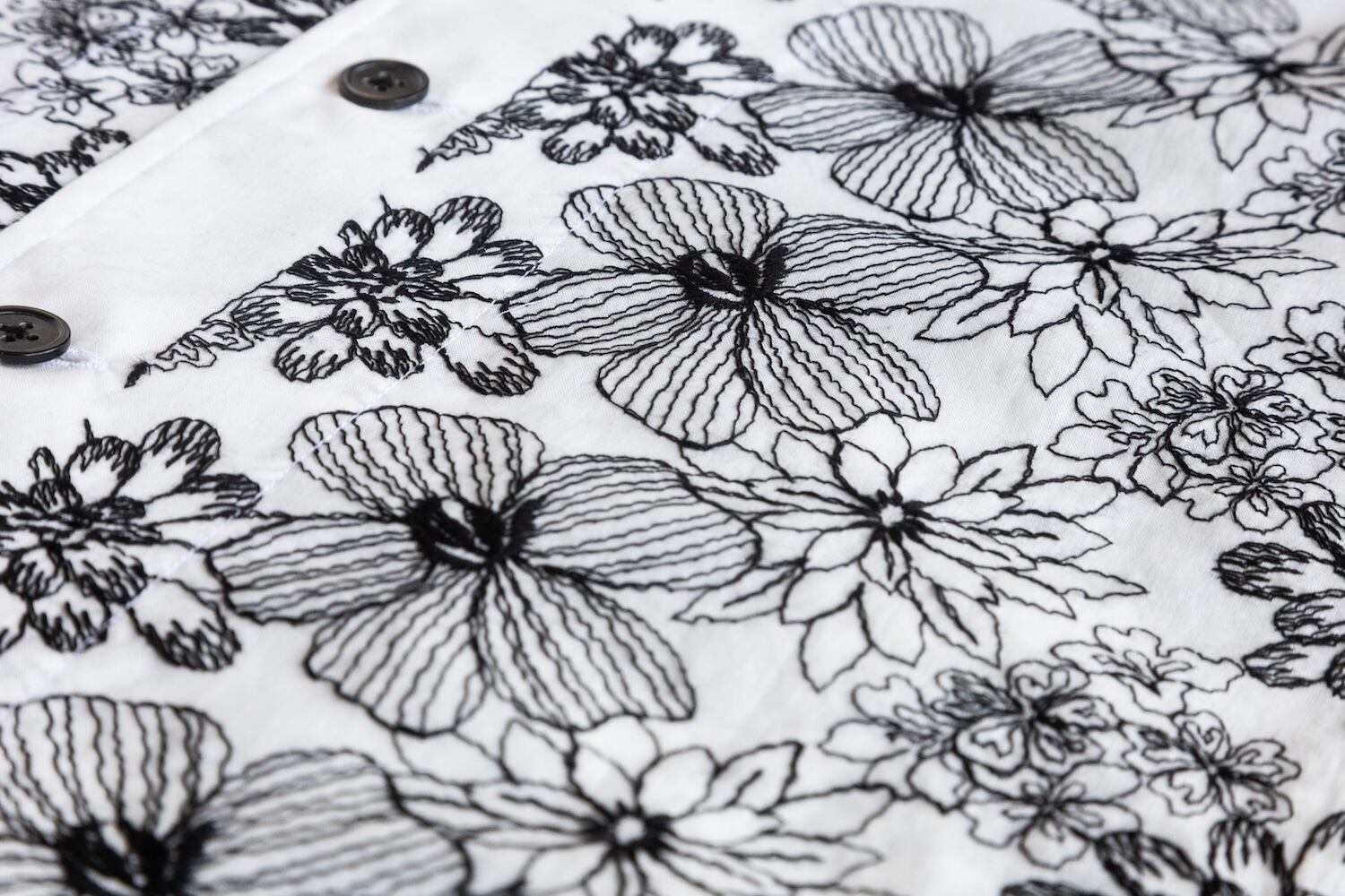 刺繍ならではのほのかな立体感が生まれ、モノトーンでありながら奥行きのある表情に仕上げました。