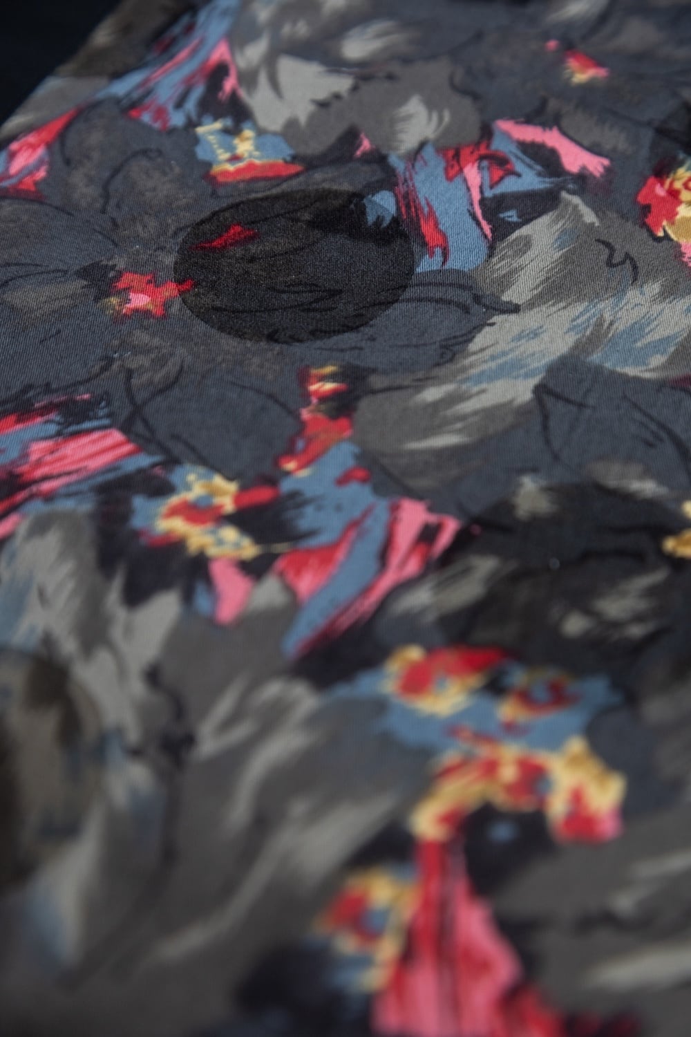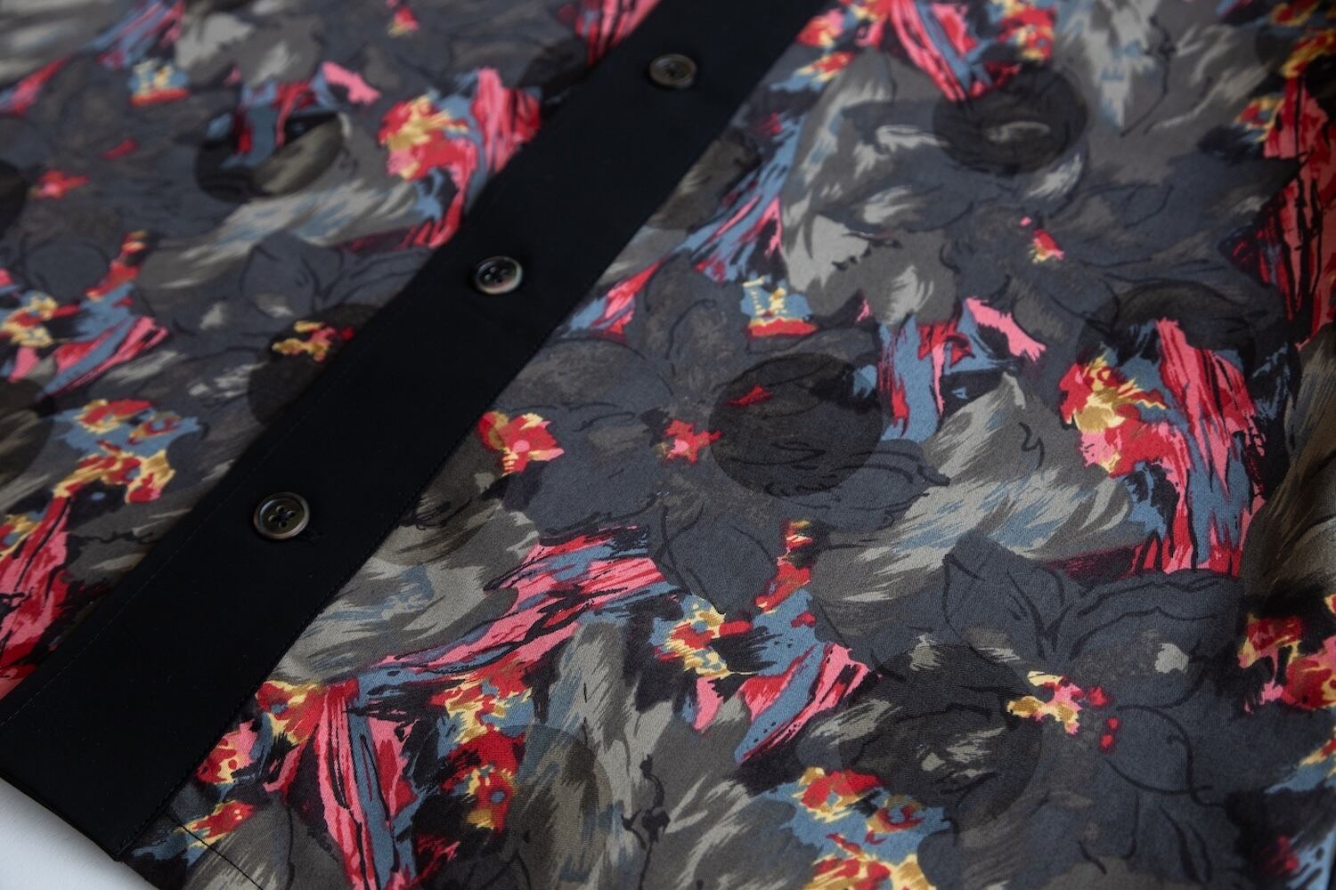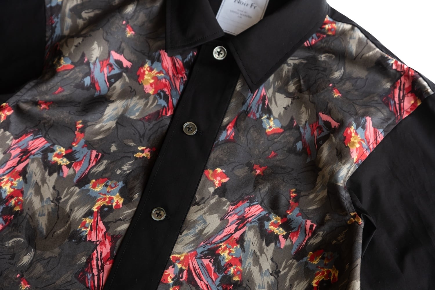 影をまとった花柄が、黒の中に静かに浮かび上がるハーフスリーブシャツ。