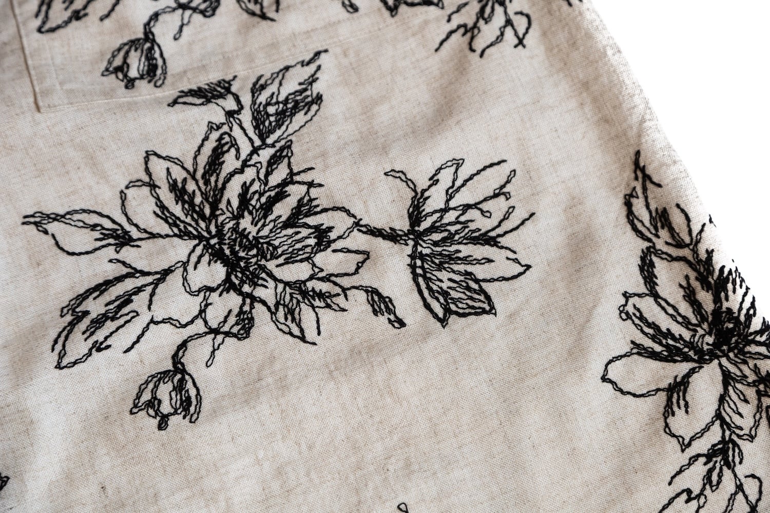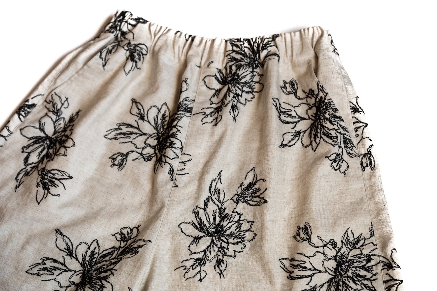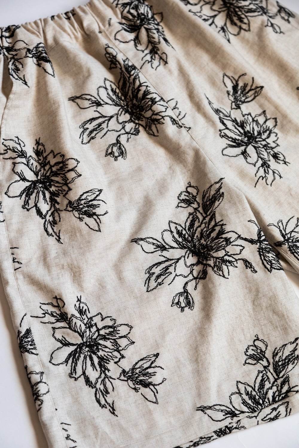 立体感のあるフラワー刺繍を全面にあしらったハーフパンツ。